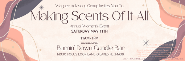 Join Cathy & the Wagner Advisory Group team as she discusses how to make "scents" of it all. You will also have an opportunity to pour your own candle & enjoy a delicious lunch.